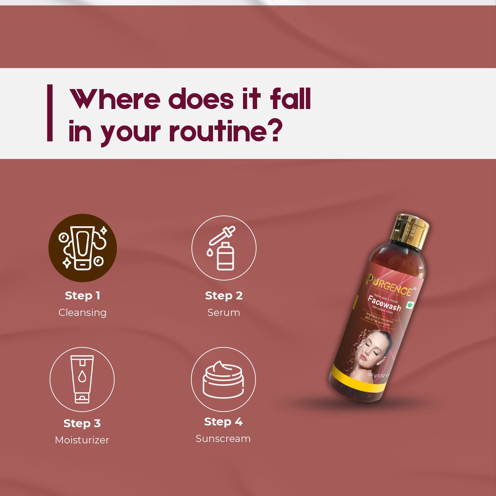 • Brightening Cleanser – Removes dullness & reveals fresh, radiant skin